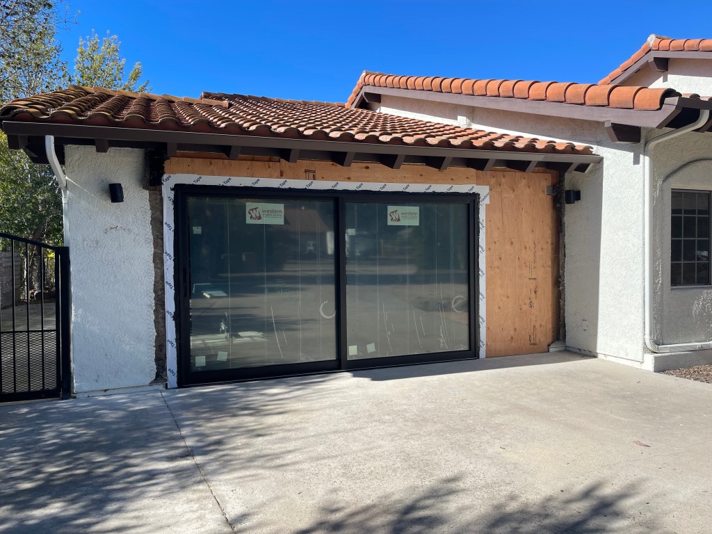 We also order a new sliding door and recycle our old metal door. The parameters set by the city for a new door are rigid. Needing the highest rated fire protection and earthquake protection, translates into to a costly purchase. The new sixteen foot door was the biggest expense of our project.