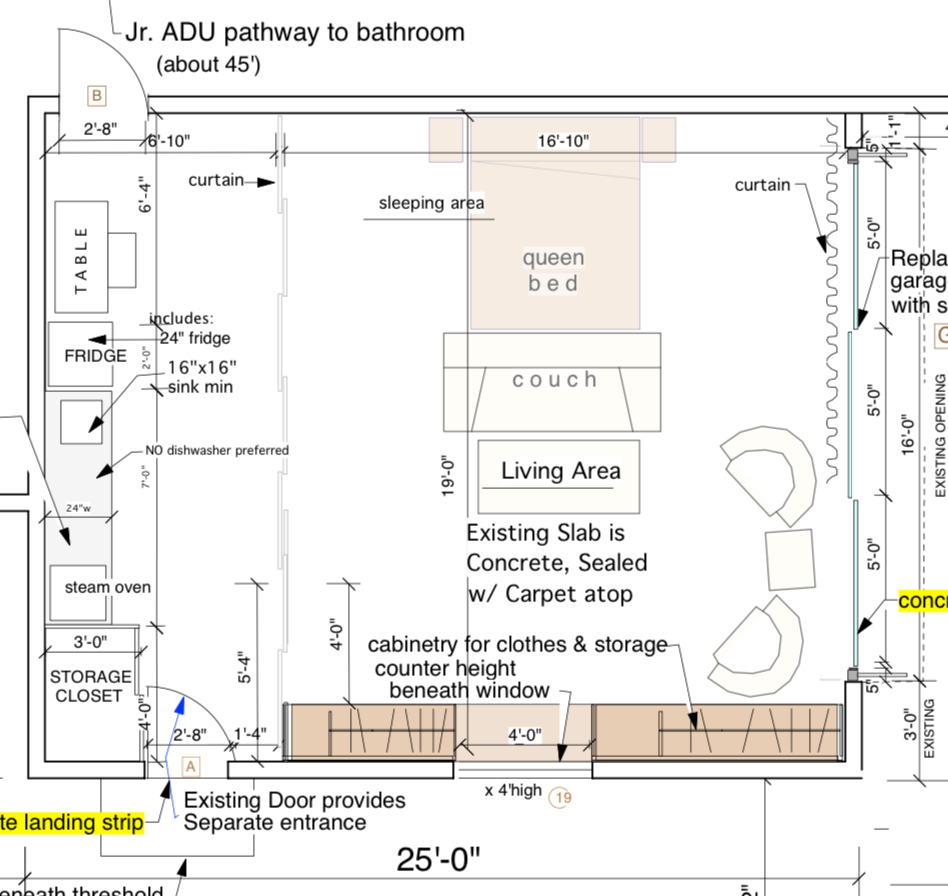 For 2 years, we have debated converting our garage into a legal Junior ADU (Accessory Dwelling Unit). With teen children still living at home, I fantasize about having a living room with no television. Images of reading a book in front of the fire, taking a nap on the sofa, or putting together a puzzle on the coffee table dance in my head. The living room could transform into a calming space without a television. Plus, an ADU would down the road come in handy. We have retirement dreams of traveling and the plan, ideally, would be to load our personal items into the ADU and rent the house out while we travel for a year abroad. An ADU is also a great option for extra income in retirement. We could have a renter. We could also use it for a caregiver if one of us would need one down the road.